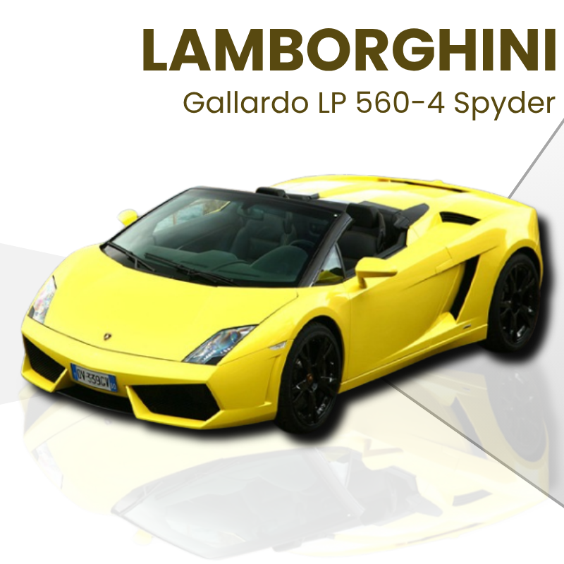 The Lamborghini Gallardo LP 560-4 Spyder brings open-air exhilaration to the already thrilling Gallardo platform, combining raw V10 power with the freedom of a retractable soft top. Beneath its sculpted body lies a 5.2-litre naturally aspirated V10 engine producing 552 bhp, launching the car from 0 to 100 km/h in just 4.0 seconds. The “560” refers to its metric horsepower, while the “4” signifies Lamborghini’s advanced all-wheel-drive system, which ensures superb traction and control—whether you’re powering through corners or cruising under the sun. With refined aerodynamics, a lower and wider stance, and an unmistakable exhaust note that becomes even more visceral with the top down, the LP 560-4 Spyder offers a perfect blend of Italian flair, speed, and sensory delight. It’s a supercar that delivers drama at every turn, with the wind in your hair and a symphony behind your ears.