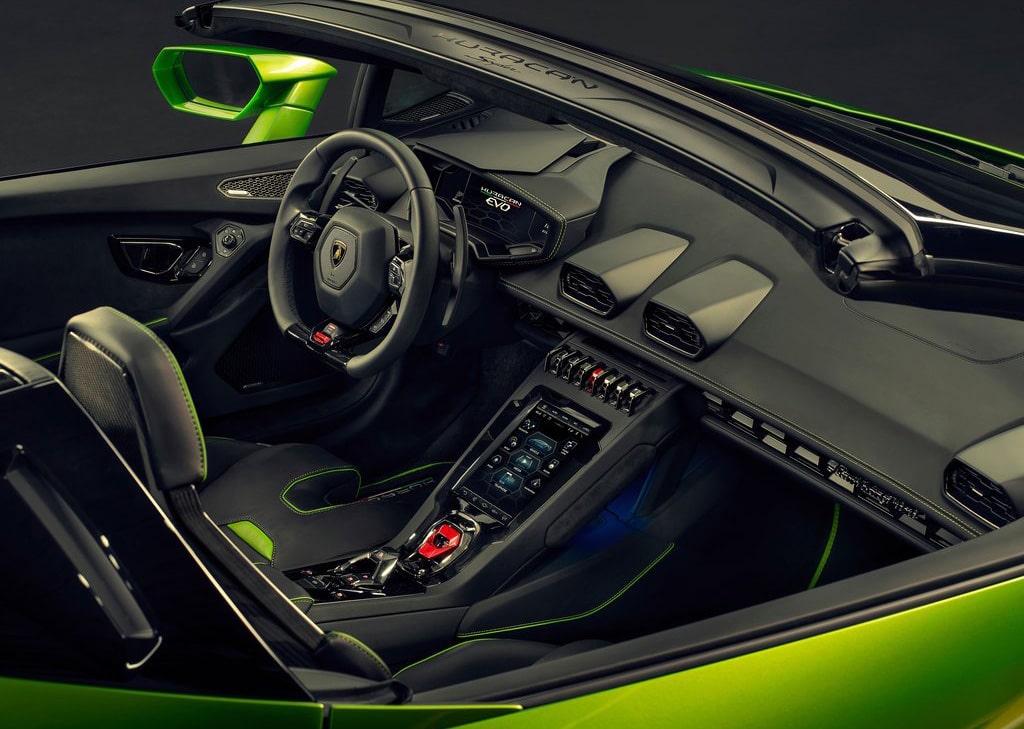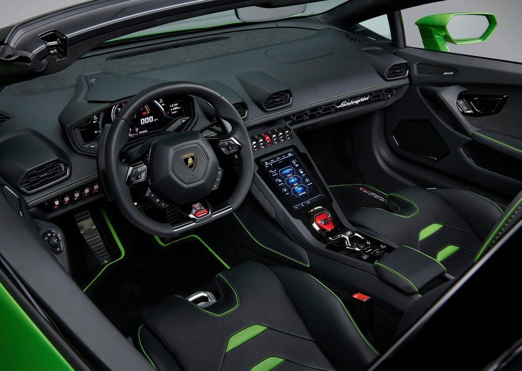 Beyond its performance, the Huracan Evo Spyder’s design is unmistakably Lamborghini, featuring aggressive styling and an interior inspired by fighter jets. The cabin boasts Alcantara or Carbon Skin upholstery and an advanced 8.4-inch touchscreen infotainment system, allowing seamless control over entertainment and performance settings.