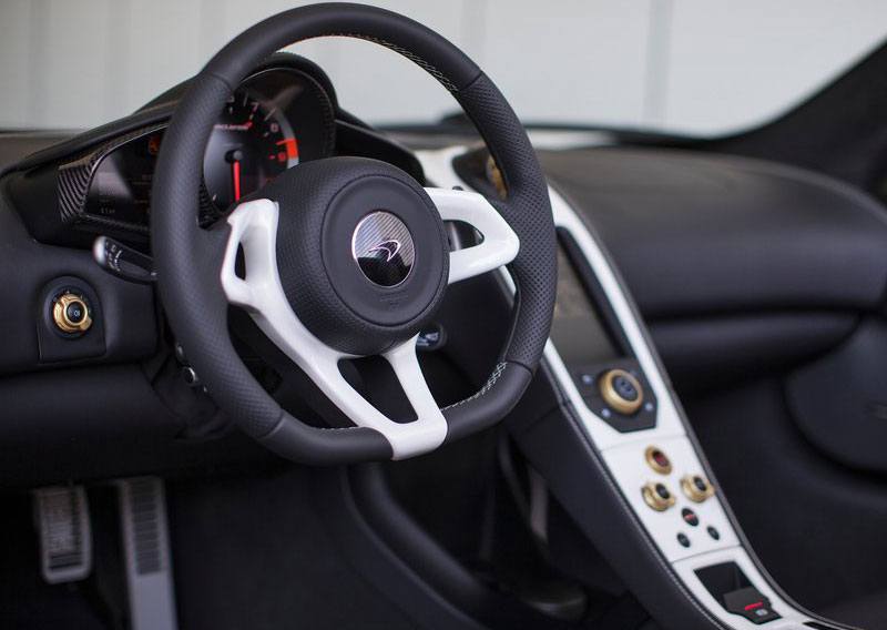 The McLaren 650S Spider combines stunning design with incredible performance. Its carbon fibre chassis, Formula 1 design gearshift, and advanced audio system ensure an exhilarating drive. The luxurious Carbon Black Alcantara interior offers extraordinary comfort, while the small-diameter steering wheel guarantees optimal grip for racing performance. Experience the extraordinary craftsmanship and attention to detail that make this supercar truly exceptional.