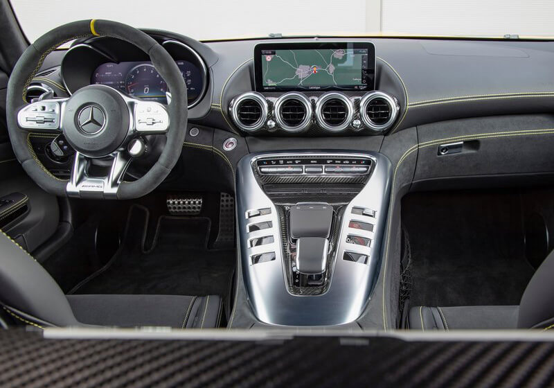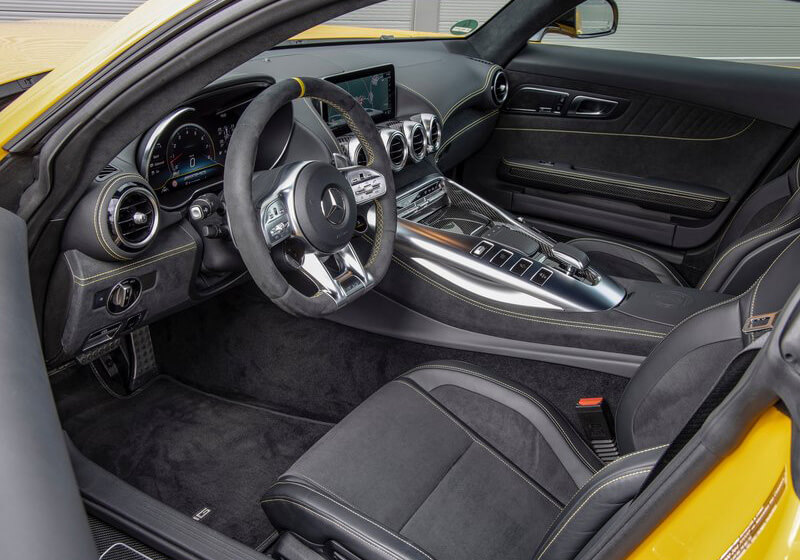 The Mercedes-Benz AMG GT S is a top-tier racing car, offering a combination of style, performance, and comfort. The interior features a large, solid center console, sleek design, and comfortable seats, with an easy-to-grip steering wheel. It also includes advanced features, such as an analogue speedometer and a warning button. The car’s under-body is made of aluminum, enhancing its impressive look and ride quality, ensuring it stands out on the road.
