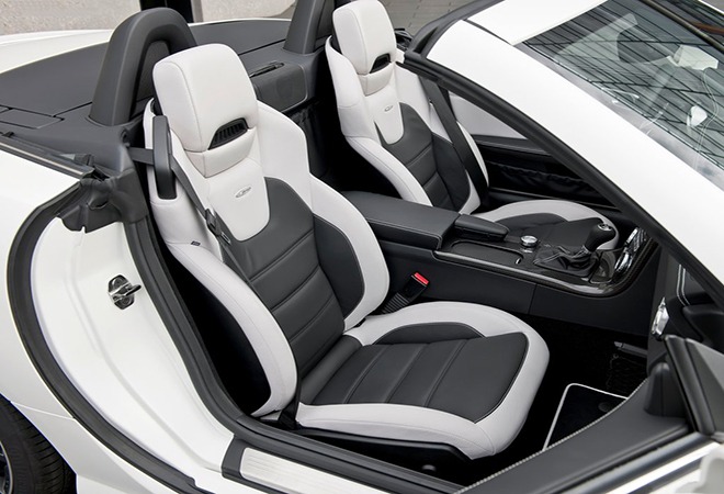 The SLK combines elegant design with advanced technology. Its 3.0L V6 bi-turbo engine and seven-speed automatic gearbox offer a comfortable and secure ride. The luxurious interior boasts premium finishes, metal air vents, and soft touch materials on the dashboard. Experience the state-of-the-art craftsmanship and attention to detail that make this car truly exceptional.